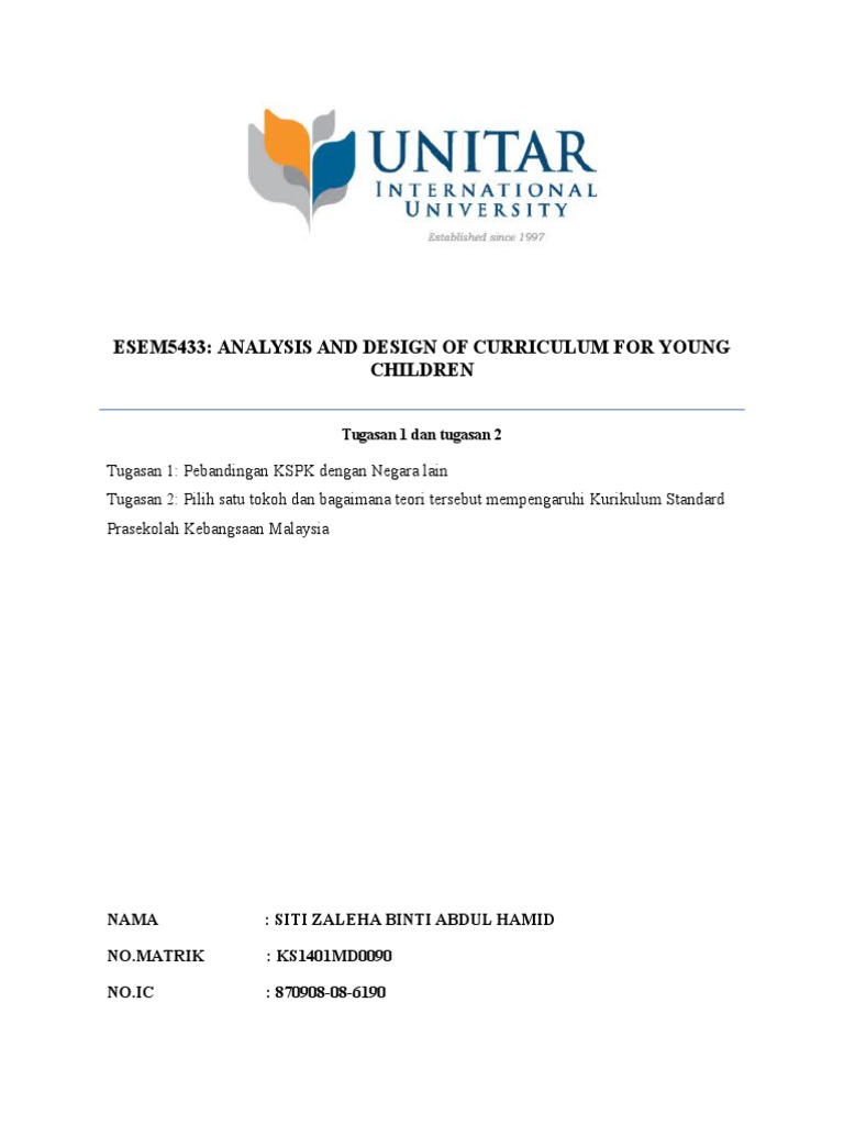 Assignment Hbec3903 Pendidikan Awal Kanak Kanak Isi Kandungan Perkara Muka Surat 1 Pengenalan 2 Studocu